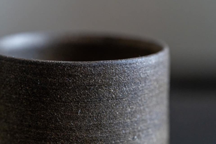 その作品は、計算され削ぎ落とされ生まれる繊細で美しいフォルムと高温で硬く焼かれた土の生み出す鈍い光沢が一つになり、静けさを纏いながらもどこか温かみがあります。