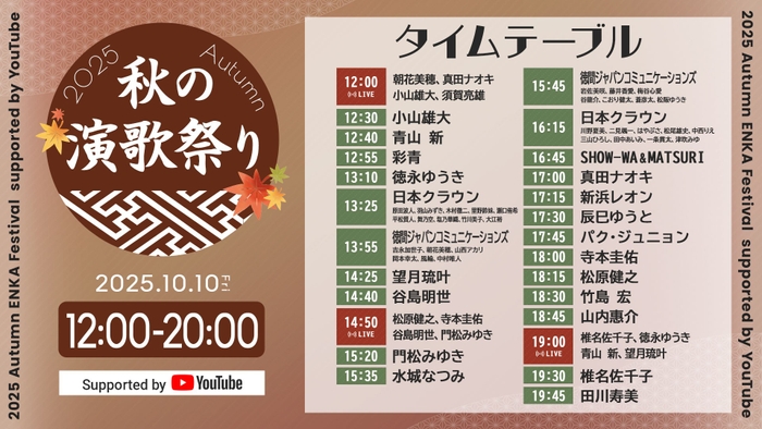 「秋の演歌祭り2025 Supported by YouTube」 10月10日開催!! 8時間・53組のアーティストがプレミア公開