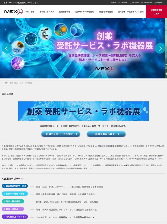 ・創薬 受託サービス・ラボ機器展 https://ivexl.com/search-list_eEx-name.html?id=378
