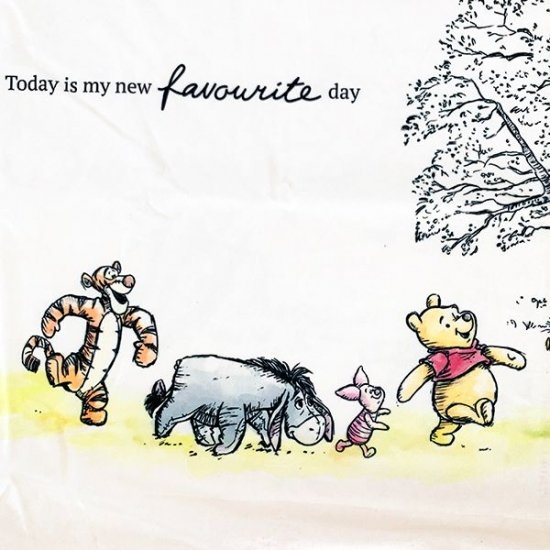 可愛くて癒されるくまのぷーさんもあります。くまのぷーさんは大人のファンも多いですよね。絵本風のタッチがシックで素敵!100エーカーの森をプーさんたちが行進中です。