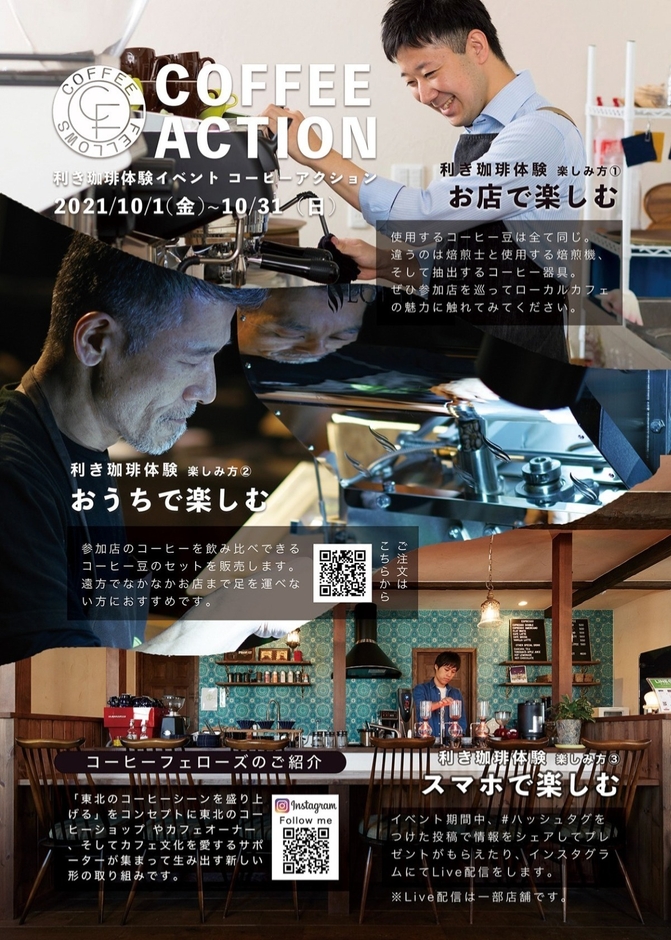 利きコーヒーイベント「COFFEE ACTION」2年ぶりの復活!同じ産地のコーヒー豆を、焙煎士が様々に焙煎・抽出する飲み比べイベントがさらに進化 北海道・東北・北関東のコーヒー店が参加します。