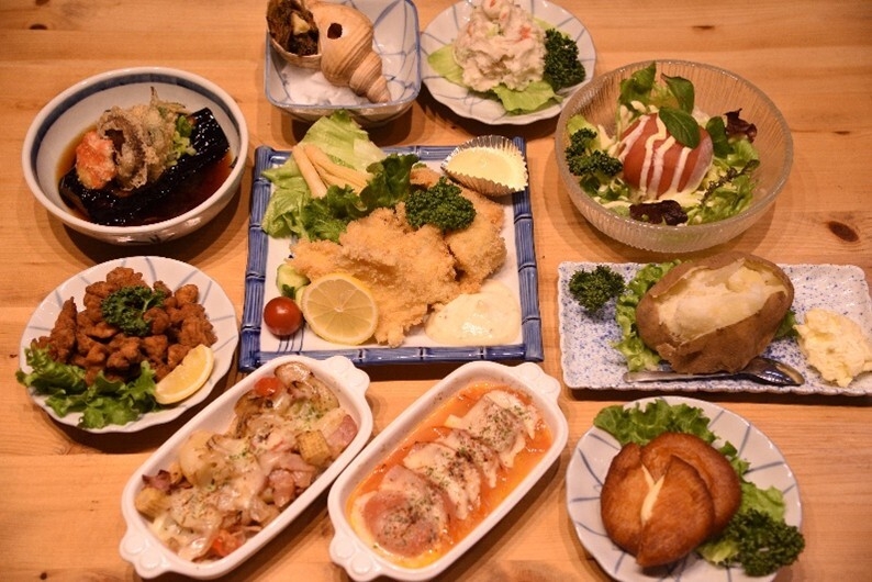 さらに、地元・北海道産の若鶏を使用した「若鶏半身から揚げ」や、「かにシューマイ」「いもバター」などの一品料理もご用意。お食事としてはもちろん、お酒のお供にもぴったりのラインアップです。