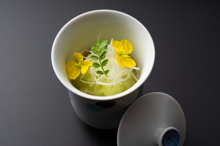 白菜と雲子の甘みを爽やかな文旦で味わう先付「雲子養生蒸し」