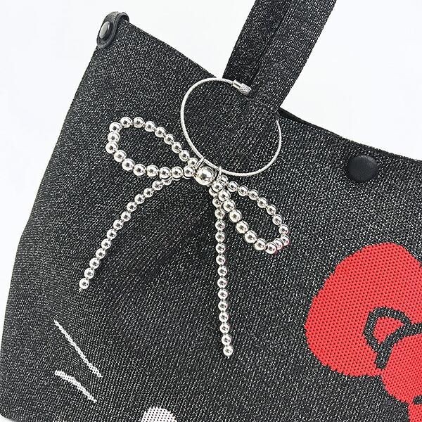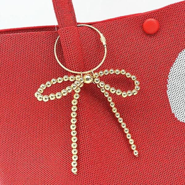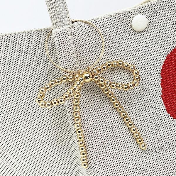 こちらのバッグには、取り外しも可能なリボン型チャームが付属しています。バッグの可愛さを最大限に引き出すアクセントになっており、デザインの華やかさがよりアップして見える大人カワイイちょい足しアイテムですね。
