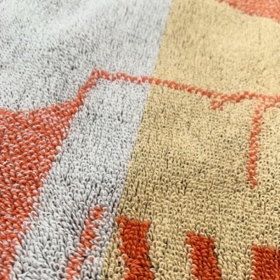 左右で雰囲気がガラリと変わりますよね。サイズは横83cm×縦34cm!おうちのタオルとして、またはお出かけの際にも持ち運べるサイズ感です。