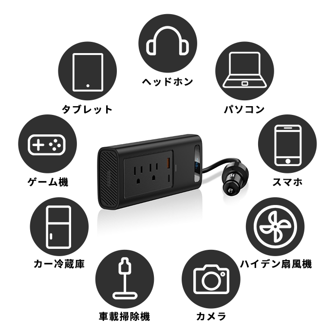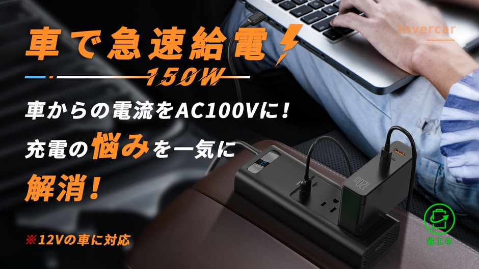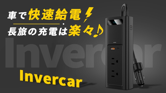 車で最大150W急速給電!後部座席の充電も楽々!車が動いている限り、電源がなくなる心配無し!超軽量&コンパクトなインバーター「Invercar(インバーカー)」が日本に上陸!!
