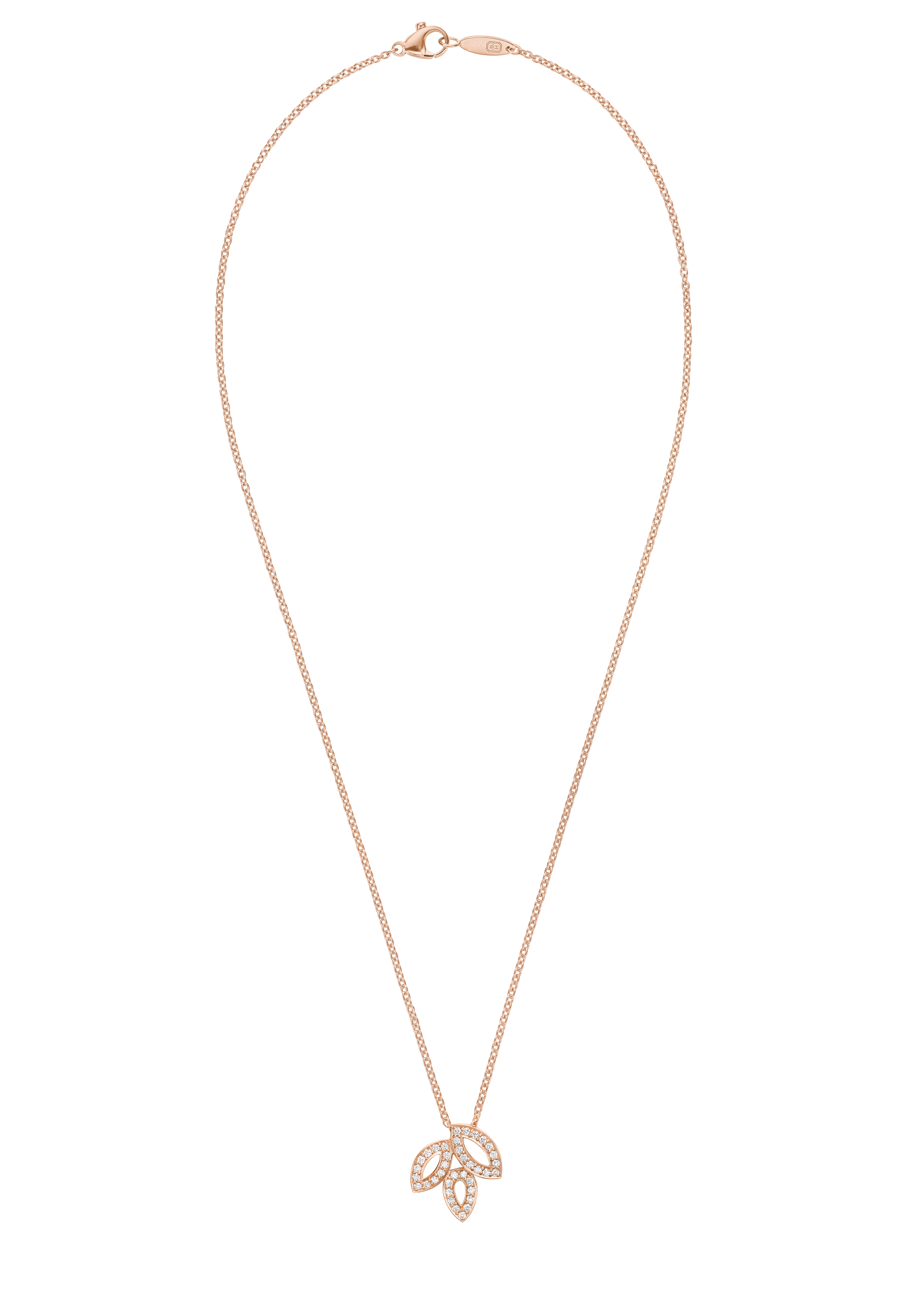 今回のリニューアルオープンを記念し、「リリークラスター・ミニ・ペンダント」に、ローズゴールドの温かみをまとった新たなバリエーションが登場します。日常のスタイリングにも取り入れやすい、軽やかで立体的なデザインが人気のリリークラスター・ミニは、繊細にセッティングされたダイヤモンドが花びらの流れるようなラインを描き出し、現代的なエレガンスを体現しています。
