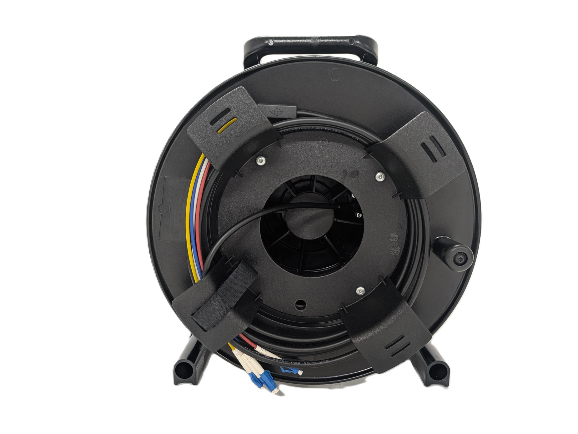 リールがセットになり、持ち運びやすくなった堅牢な光ケーブル。「イージーロバストケーブル」を使えば素早く簡単に光伝送路を構築可能です。