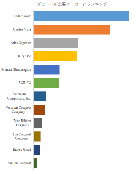 LP Informationのトップ企業研究センターによると、家庭用コンポストの世界的な主要製造業者には、Cedar Grove、Garden-Ville、Atlas Organics、Dairy Doo、Premier Shukuroglou、SOILCO、Vermont Compost Company、American Composting, Inc.、Blue Ribbon Organics、The Compost Companyなどが含まれている。2024年、世界のトップ10企業は売上の観点から約10.0%の市場シェアを持っていた。