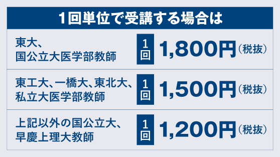 月額3,800円でマンツーマン個別指導を月4回受講いただけます。また、1回単位でも受講できます。