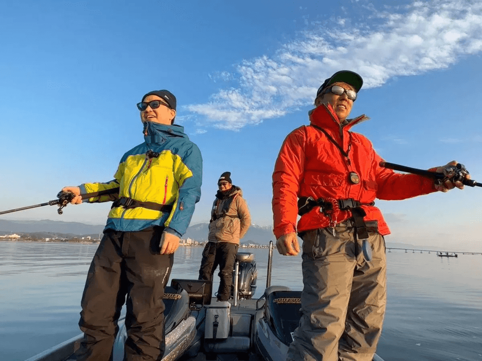 コラボカバースキャットを使用して、デプス・奧村 和正社長と天下一品・木村 一仁社長が琵琶湖(滋賀県)にてバス釣りを実践!