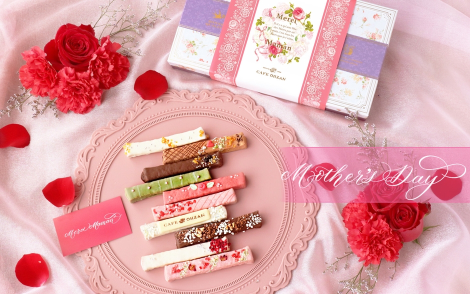 OHZANは、フランス語で「ありがとうお母さん」を意味する、「Merci Maman」と書かれた掛け紙をおつくりしました。