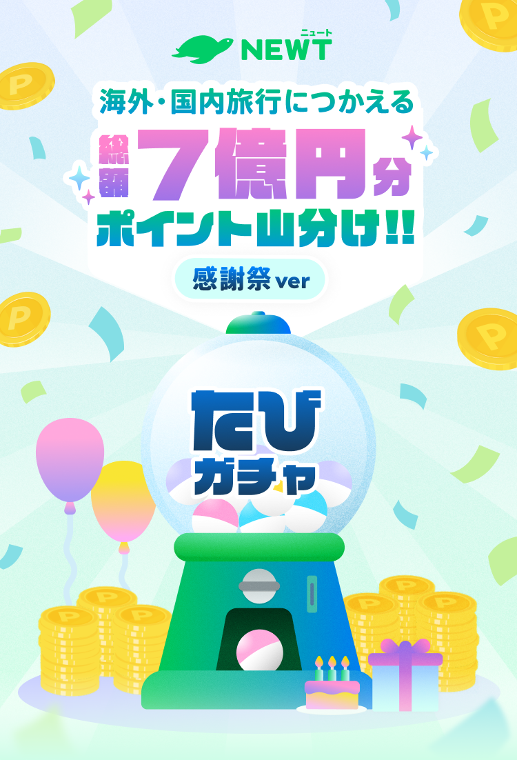 ◼︎国内・海外旅行に使える総額7億円が当たる「たびガチャ」