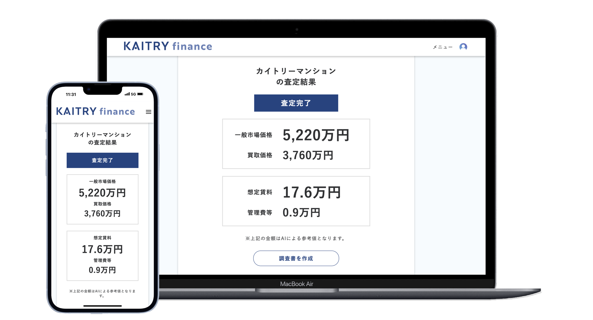 金融機関向けSaaS『KAITRY finance』「物件査定一括サービス」提供開始