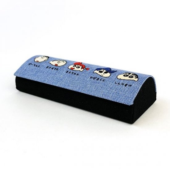 そしてこちらは、しんちゃんと仲良しのお友達がちび刺繍になっているデニム生地のメガネケース♡生地感がお洒落な上に、あえてキャラクターのお顔だけを5人並べて刺繍してあるところが、白色とは違う可愛さがでています♫