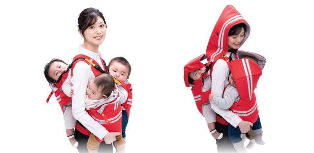 3人抱っこできる避難用抱っこひもがキッズデザイン賞を 受賞 抱っこひもに慣れていなくても素早く・安全に避難