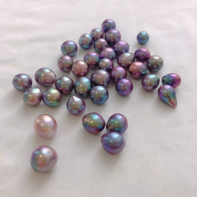 この紫の真珠は、友人の養殖業者たちが苦労の末に作り上げた真珠です。