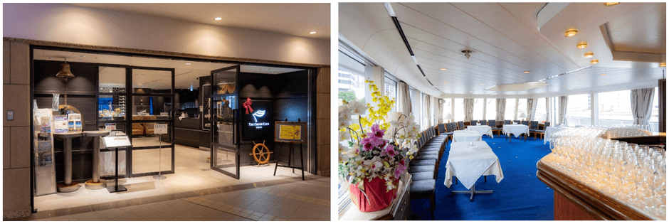 会場となる「ザ・クルーズクラブ東京」は、東京湾を周遊する「クルーズシップ レディクリスタル号」と陸上のクラブハウスを併せ持つ、天王洲アイルのフレンチレストランです。この度、大黒屋史上初の船上での採用イベントが実現。華やかな環境を活かした、様々な企画を行いました。