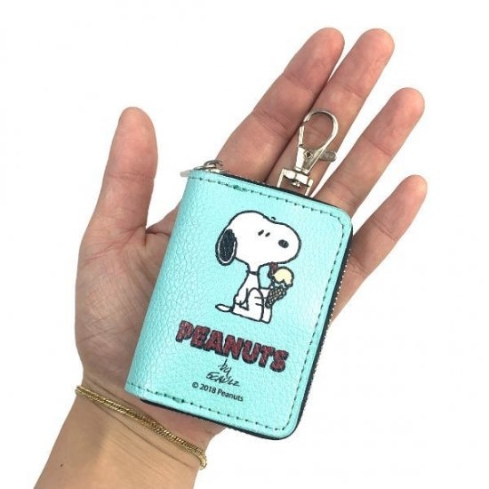 スヌーピーのスマートキーケースのご紹介です。ファスナーで開閉するタイプなので、安心に持ち運びできます。外側がクリアなウィンドウ仕様なので、ファスナーを閉めたままでもスマートキーの操作ができちゃいますよ♪