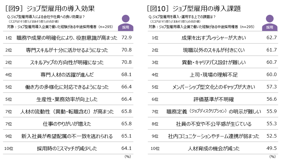 ここからは、ジョブ型雇用を導入している企業に勤めている、またはジョブ型雇用で就職・転職した経験がある中途採用権者295人に、ジョブ型雇用の実態を聞きました。