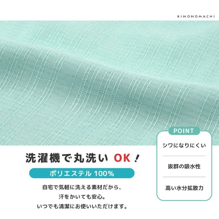 暑い時期の和装を快適にする、高機能ポリエステル素材CoolPassを使用した長襦袢です。吸水性と高い水分拡散力が好評のCoolPassは、さらりとした着心地で、暑い時期の着物のインナーとしても優秀。