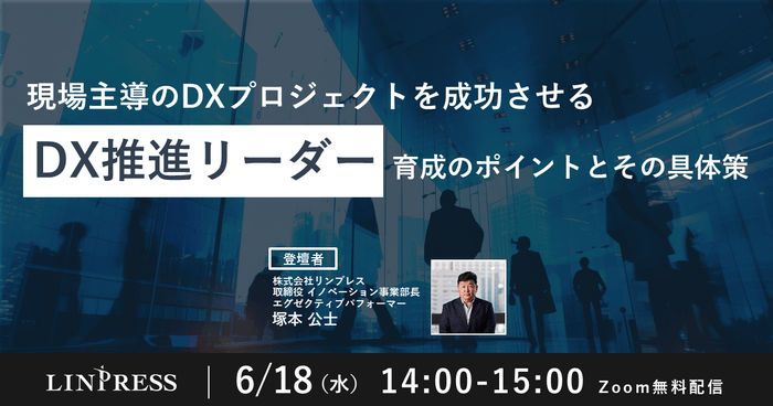 株式会社リンプレス(本社:東京都港区、代表取締役社長:三宮壮、以下、リンプレス)は、2025年6月18日(水)14時からウェビナー『現場主導のDXプロジェクトを成功させる「DX推進リーダー」育成のポイントとその具体策』を開催いたします。