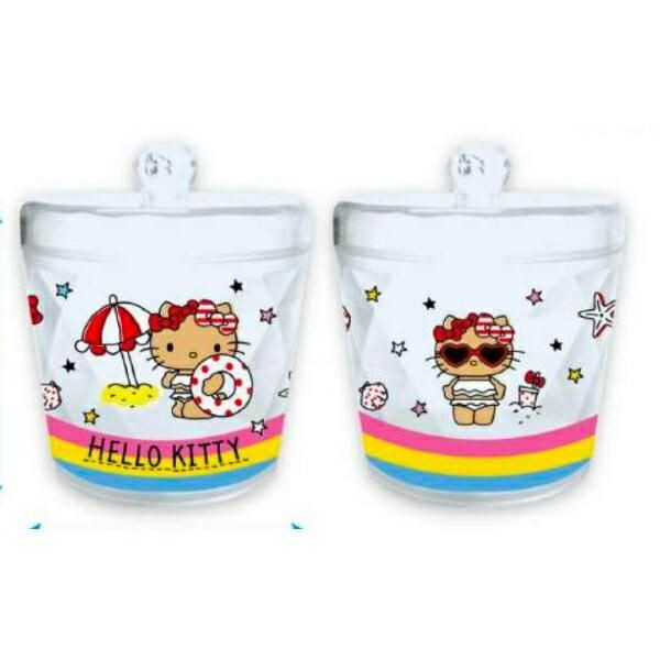 こちらも懐かしのデザイン柄「日焼けキティ」です。南国風なカラフルなデザインがやっぱり魅力的。デスクや棚に置いておくのに丁度いいサイズ感で、そのまま置いておくとちらかった印象のものをこの中にいれてかわいく収納できます。サイズ:9.5cm×10cm×10cm 素材:AS樹脂、ABS樹脂