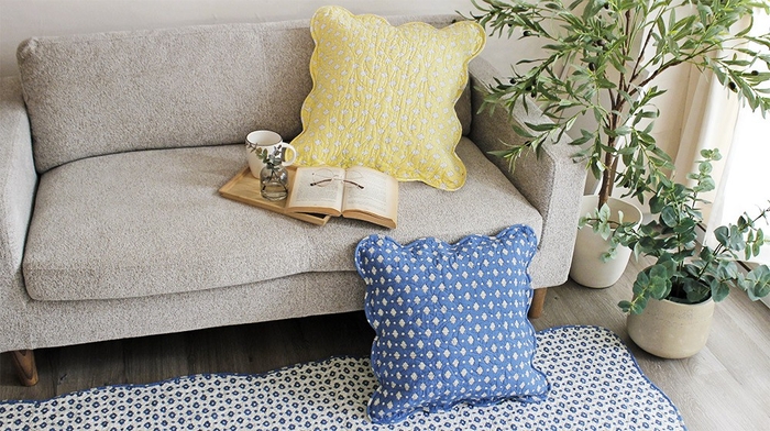 プロヴァンスの伝統柄をモダンに再解釈した美しいプリントファブリックが、リビングやベッドルームに軽やかな表情を添えます。