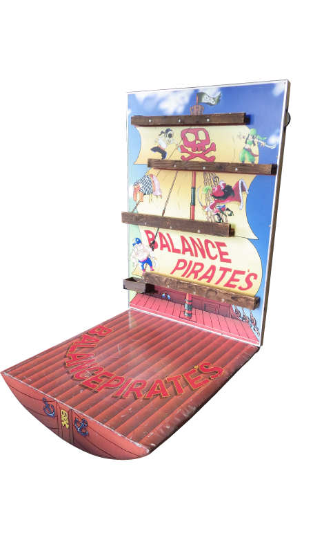 ・バランスパイレーツ:レールの上のボールを上手に体を右に左に傾けながら宝箱まで転がすバランスゲームです。