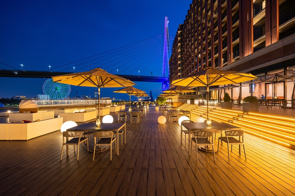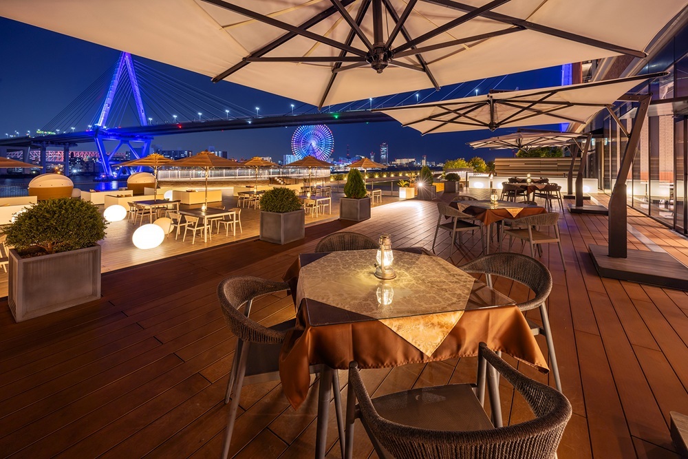初夏の風に吹かれながら、大阪ベイエリアの夜景と共に楽しむお食事の時間は、特別な思い出のワンシーンに最適。大切な人と特別なひとときをお過ごしください。