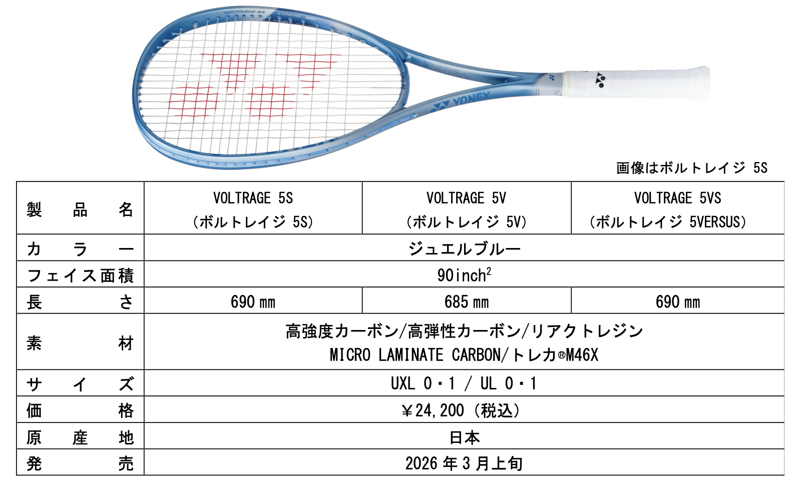 ヨネックス株式会社(代表取締役社長:アリサ ヨネヤマ)は、高い弾き性能と大きな打球音で好評をいただいている「VOLTRAGE(ボルトレイジ)」シリーズから、新コンセプト「軽やかに弾く、クリアサウンド」を掲げて進化させた「VOLTRAGE 5シリーズ」を2026年3月上旬に発売いたします。