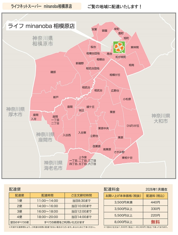 “おいしい” “ワクワク” “ハッピー” をお届けするライフコーポレーションは、4月8日(水)から「minanoba相模原店」でライフネットスーパーのサービスを開始しました。