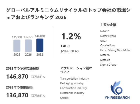 本記事は、YH Researchが発行したレポート「グローバルアルミニウムリサイクルのトップ会社の市場シェアおよびランキング 2026」 を紹介しています。