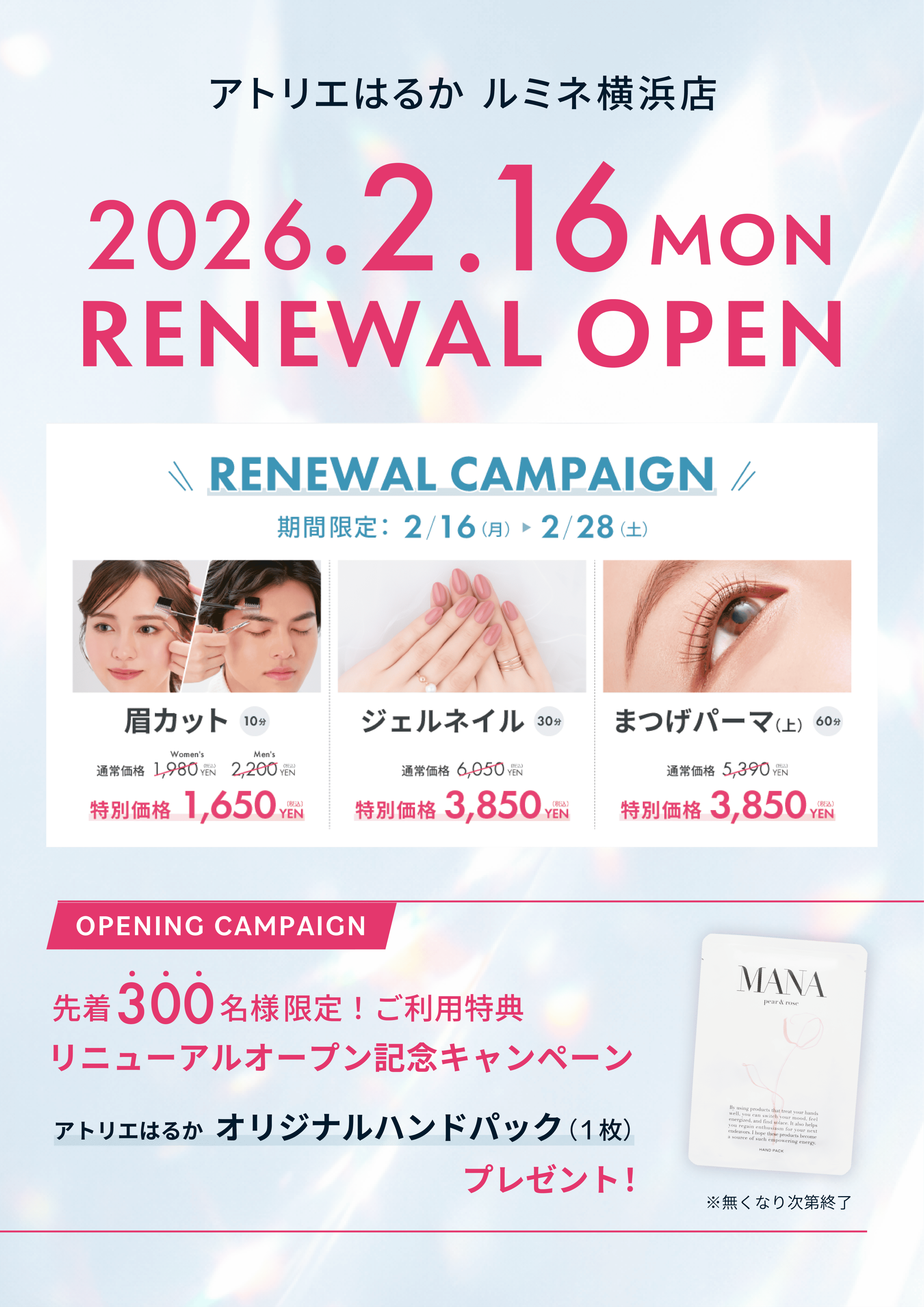 アトリエはるかオリジナルハンドパックMANA(1枚)をプレゼント!