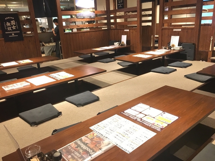 少人数や家族での利用にぴったりのテーブル席は2種類で、6名席と4名席が2卓ずつあります。宴会にも対応した掘りごたつ席は、6名席が6卓です。お座敷は10名席で、宴会からプライベート感あふれる集まりまで使えます。