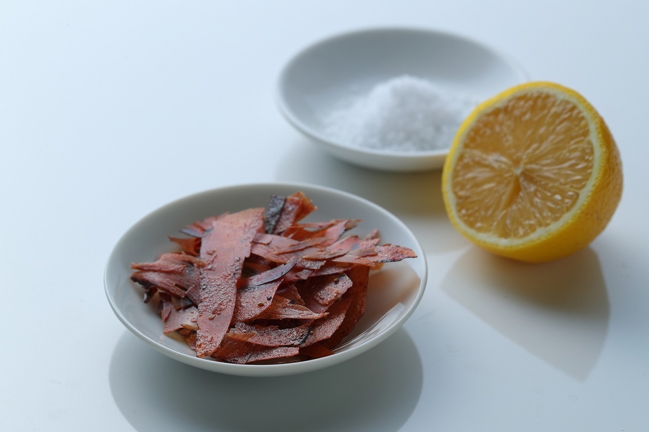 食べた瞬間に広がる爽やかな香りに鰹節チップの食感と旨みがマッチして、食べ始めたら止まらなくなる、ワインはもちろんどんなお酒にも合う大人のおつまみです。