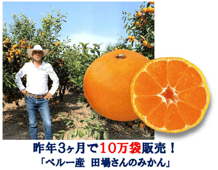 みかんの旬は冬ですが、夏にもおいしいみかんを販売できないかと考えていたところ、日本と季節が真逆のペルーで日本のみかんの苗を植えておいしいみかんを作っている方がいるとの情報を得ました。実際に食べてみたところその甘さとおいしさに感動し、このみかんをお客様にもお届けしたいと思い2020年から販売をスタート。お客様からも大変ご好評をいただき、今年も販売することができました。