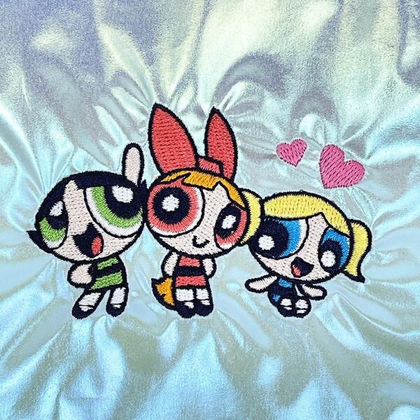 真ん中には元気で可愛いガールズたち。パワパフのロゴも入っていて、どこをみてもキュートです。