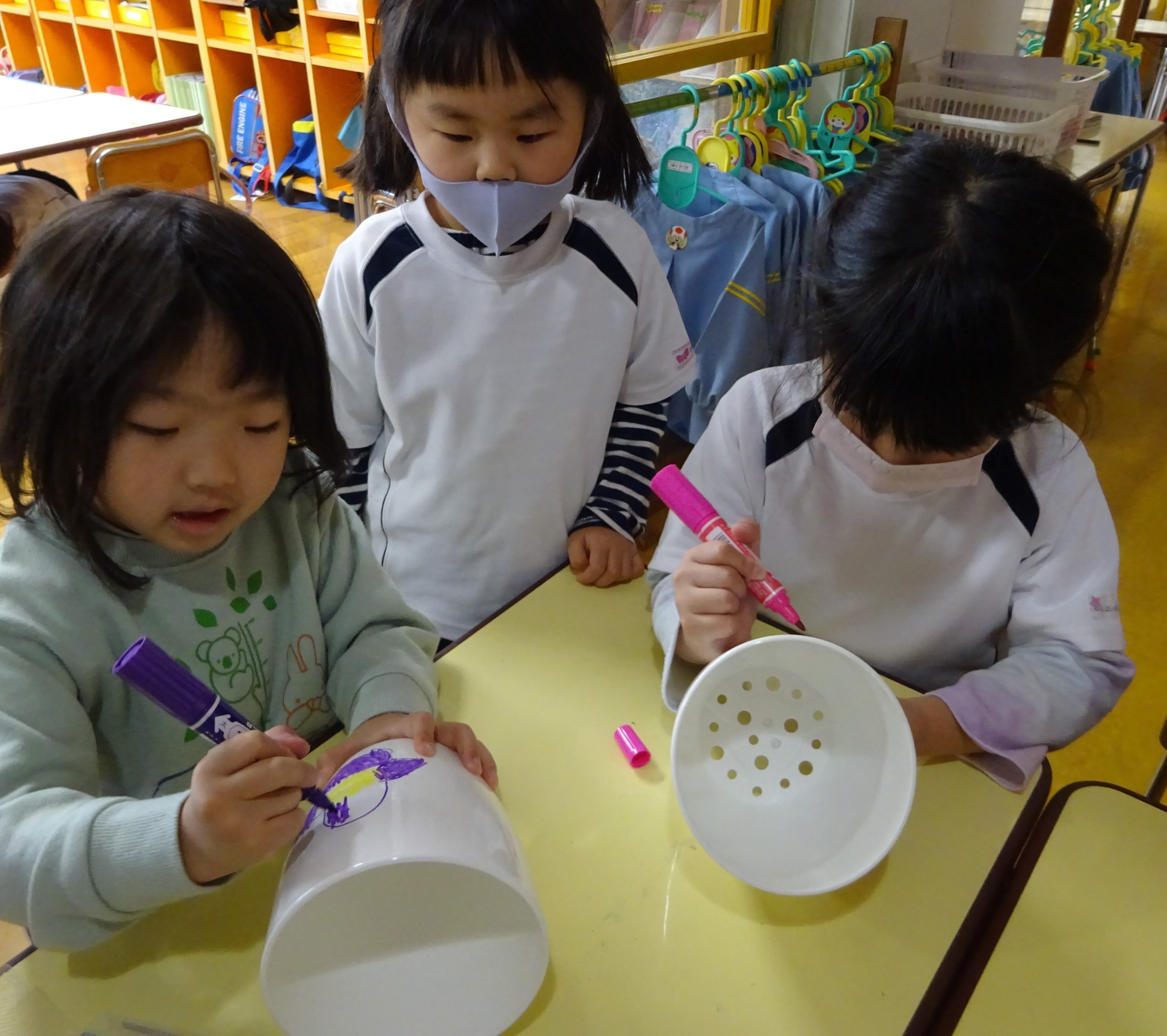愛着が湧くよう自分の鉢に自由に絵を描き、自分で植えて、一生懸命に水をやって、球根から花が咲いたとき―― その感動は、子どもたちの心に残り、家族や友達へ伝わり、また一緒に育ててみようという輪が広がります。その子どもたちが大人になったら、もっと大きく輪が広がります。
