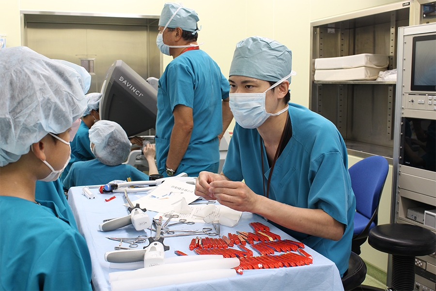 本セミナーは、そうした当院の特色を生かした社会貢献活動として、小学4~6年生を対象に企画いたしました。講師はロボット手術を執刀している医師たちが務め、シミュレーターやアーム操作、自動縫合機の体験を通じて、子どもたちが医療への関心を深める機会となることを目指しています。