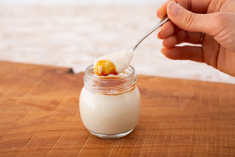 全体の味のバランスを考えながら、様々なレシピを試作し、たどり着いたのは厳選した5つの素材。なめらかな食感、美しい白さ、優しい素朴な美味しさのプリンが出来上がりました。別添のカラメルソースをかけて味の変化を楽しんでいただく食べ方もできるようになっています。