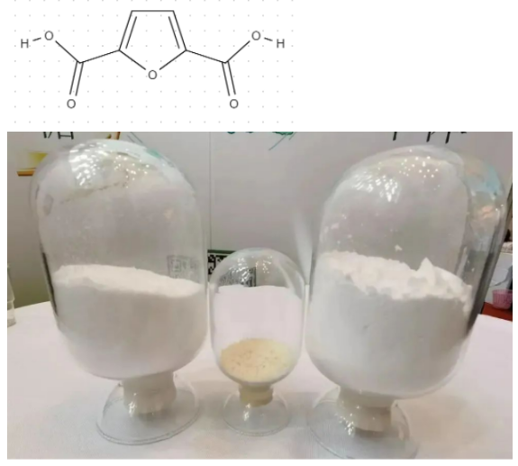 フラン・ジカルボン酸(FDCA)は原料の一種であり、その商業的な用途には界面活性剤、エポキシ樹脂、次世代ポリマーである PEF(ポリエチレンフラノエート)が含まれる。5-HMF から製造されるフラン系モノマーは、ポリエステル、ポリウレタン、ポリアミドといった新しい高性能バイオポリマーの重要な成分である。フラン・ジカルボン酸(FDCA)及びそのジメチルエステル(FDME)は、ポリエチレンフラノエート(PEF)やその他のポリエステル又はポリカーボネートへの加工が可能な、将来性のある二種類のモノマーである。