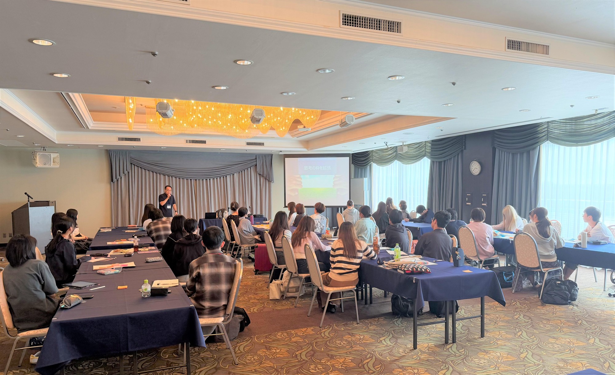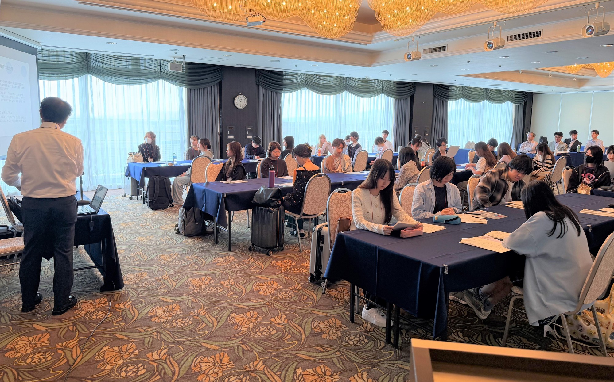 合宿初日は、プログラムの運営委員長である伊川正樹副学長の開会あいさつで研修がスタート。大脇肇理事による「大学の歴史を知る自校教育」をはじめ、各講師による「経験を成長に変える省察の方法」や「デザイン思考ワークショップ」などの講義が行われ、さらに、2026年2月に予定されている海外研修に関連して課題解決に関する講義も実施されました。