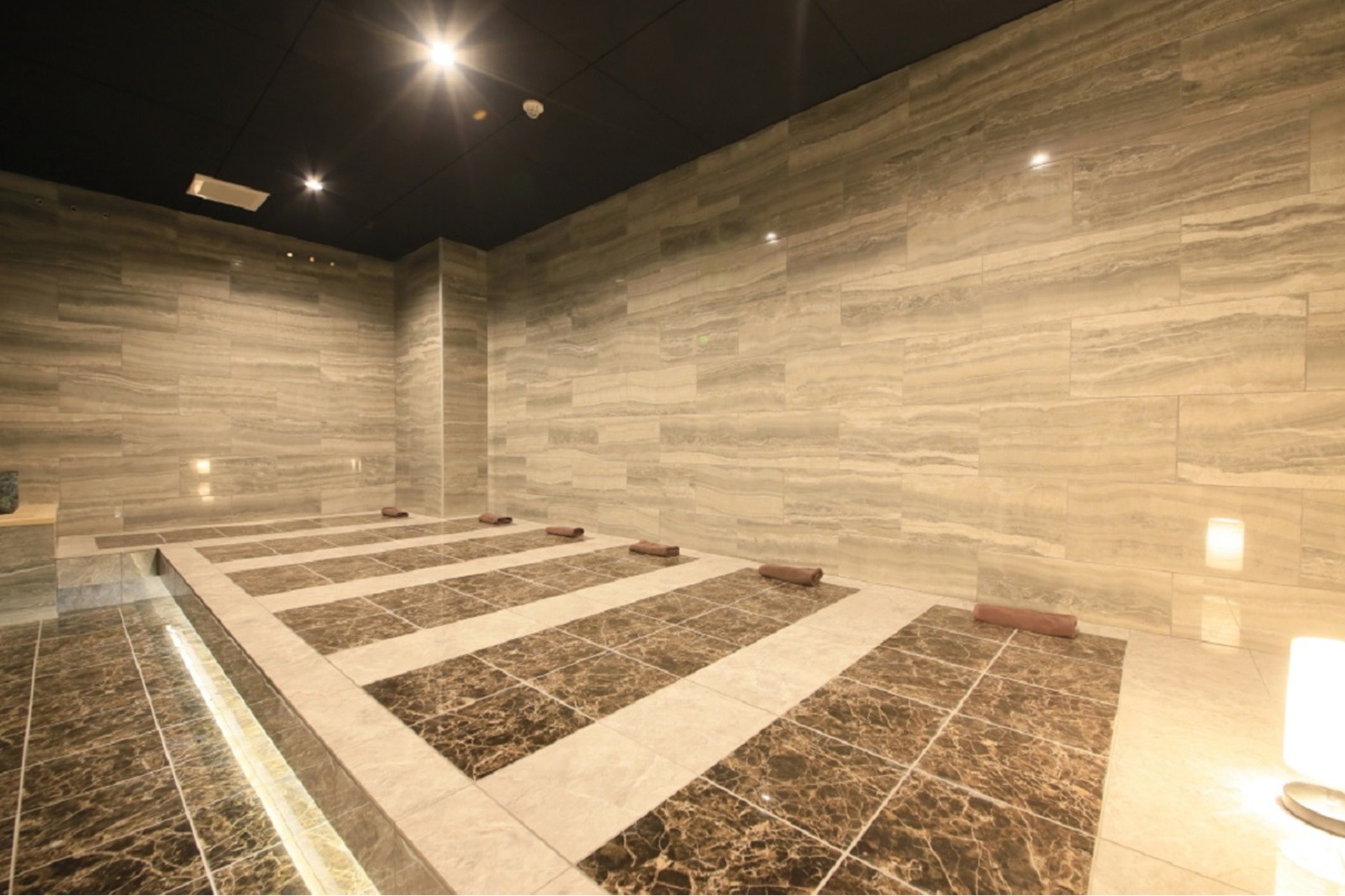 館内設備: レストラン、大浴場、岩盤浴、アミューズメントルーム、テラス、ライブラリー