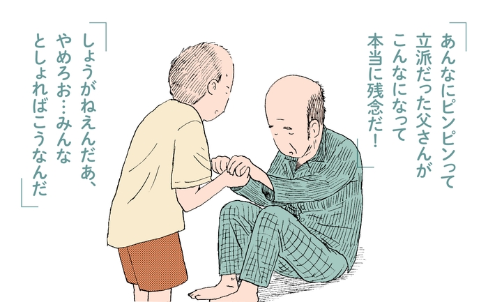 「あんなにピンピンって立派だった父さんがこんなになって本当に残念だ!」
