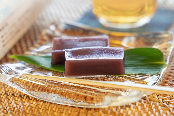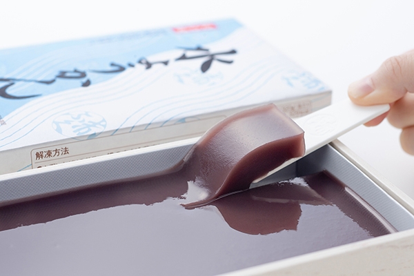 北海道産小豆のこし餡を、すっきりした甘さの瑞々しい水ようかんに仕立て、折箱に流し込んだ「一枚流し」の商品です。