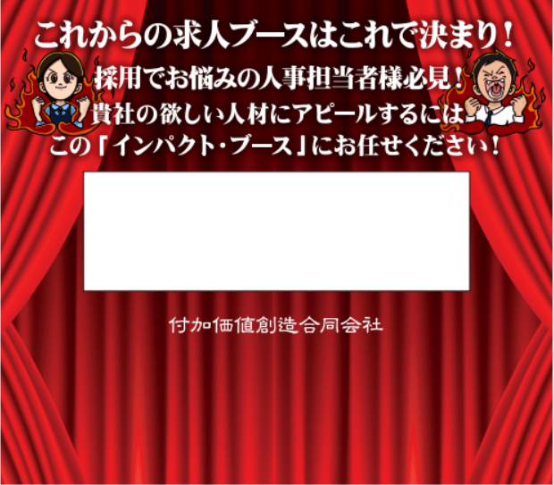 学生に求人用ブースで座って貰うためにはいくつかの要素が必要ですが、まずは目に留まってもらうことが重要です。同時に会社の想いを瞬時に伝える必要があります。そのために大きな文字で壁面にコピーを配置する必要があります。ポスターでは文字が小さく、また、パネルでは反ったり、角が丸まったり汚いイメージを伝える可能性もあります。大きな文字はそこに注視させ、社長の想いや企業の特徴を伝えやすくなります。