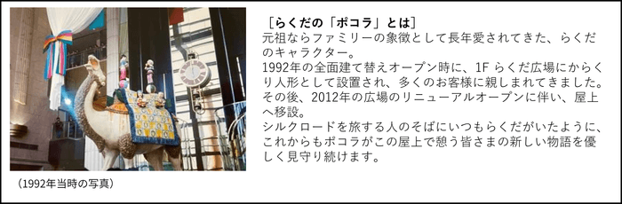 日本都市ファンド投資法人が保有する商業施設「ならファミリー」(奈良市西大寺東町2-4-1)は、屋上を『屋上広場 ~ポコラの庭~』としてリニューアルオープンいたします。万葉集にも登場する「憩う」をキーワードに、こころと体が休まる空間をデザイン。長年ならファミリーの象徴として愛されてきたらくだの「ポコラ」とともに、世代を超えて人々が集い、新たな物語を紡ぎ出す場所として地域の皆様へ開放いたします。