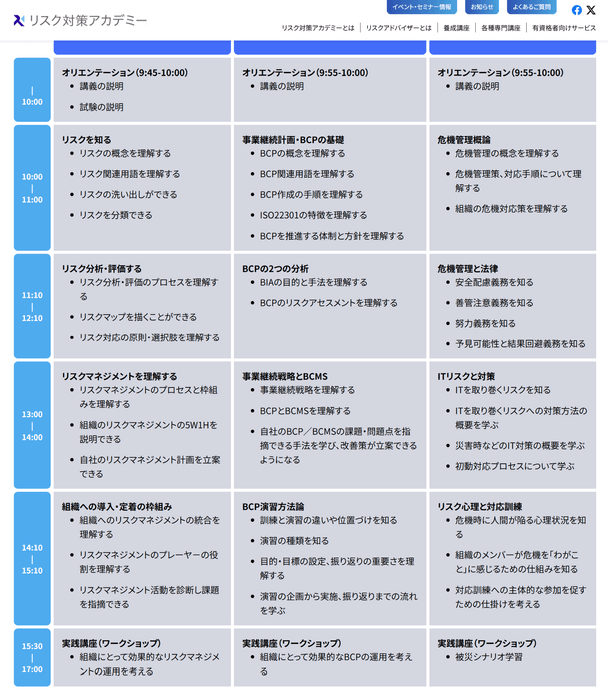 企業のBCP・リスクマネジメント担当者向け資格講座