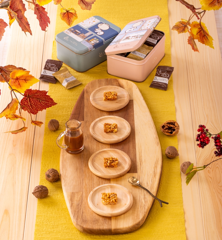 ほろ苦いキャラメルに、ぎっしり詰まった香ばしいクルミが特徴的。